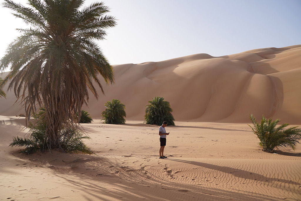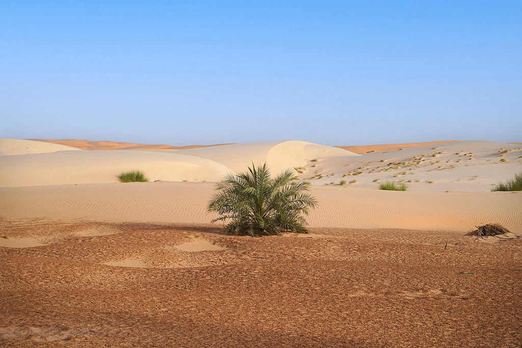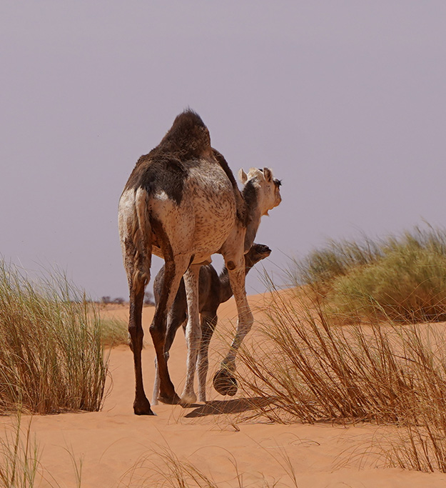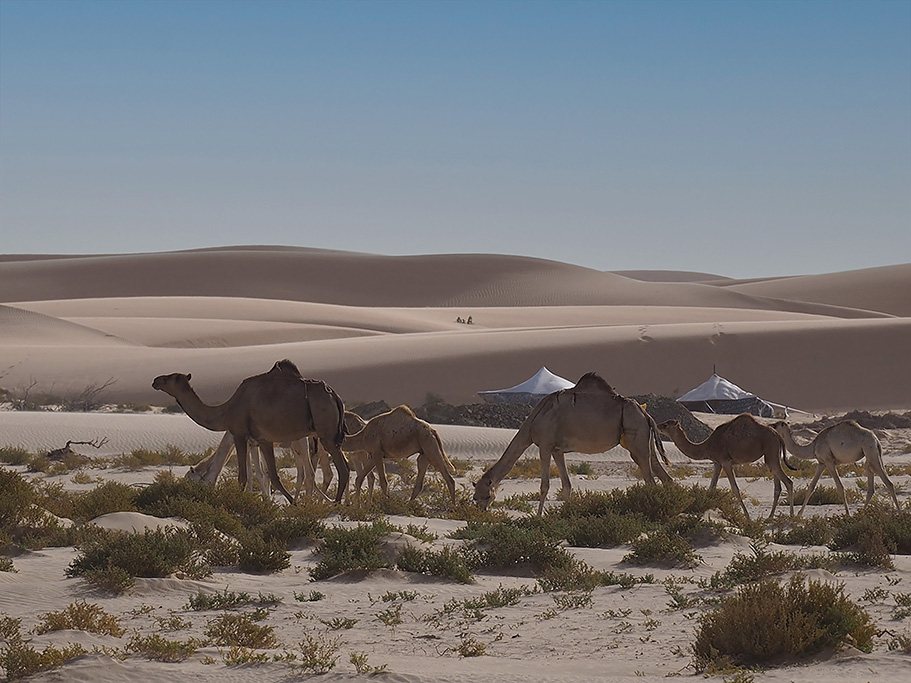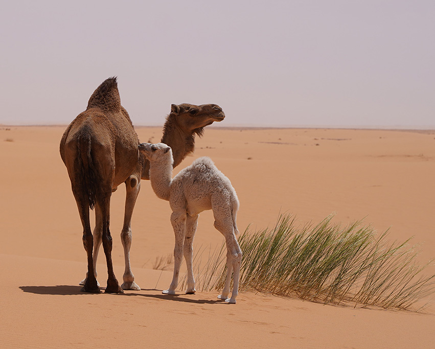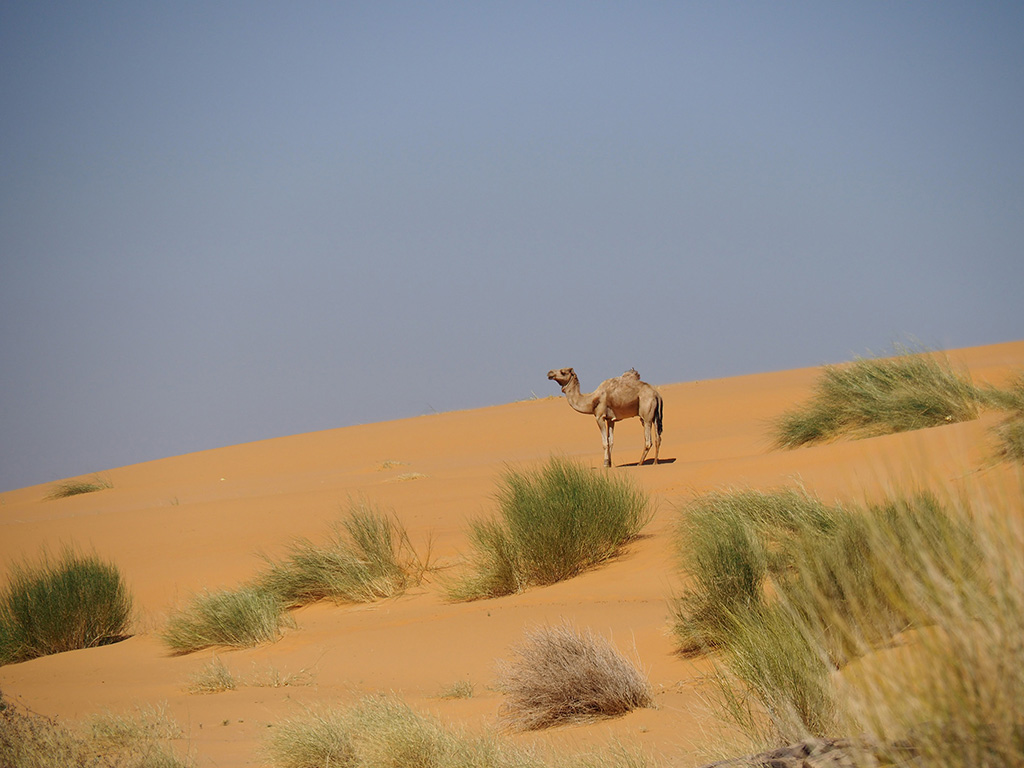 Le désert , avec ses dunes de sable, ses plateaux rocheux et ses paysages ,a un climat très aride, avec des températures élevées en été et des précipitations très rares. Il abrite une faune et une flore adaptées, incluant des espèces comme des reptiles, des oiseaux migrateurs et quelques plantes résistantes à la sécheresse. On y rencontre notamment des dromadaires et des ânes qui vagabondent au milieu des dunes.