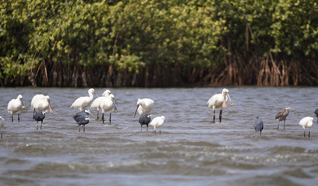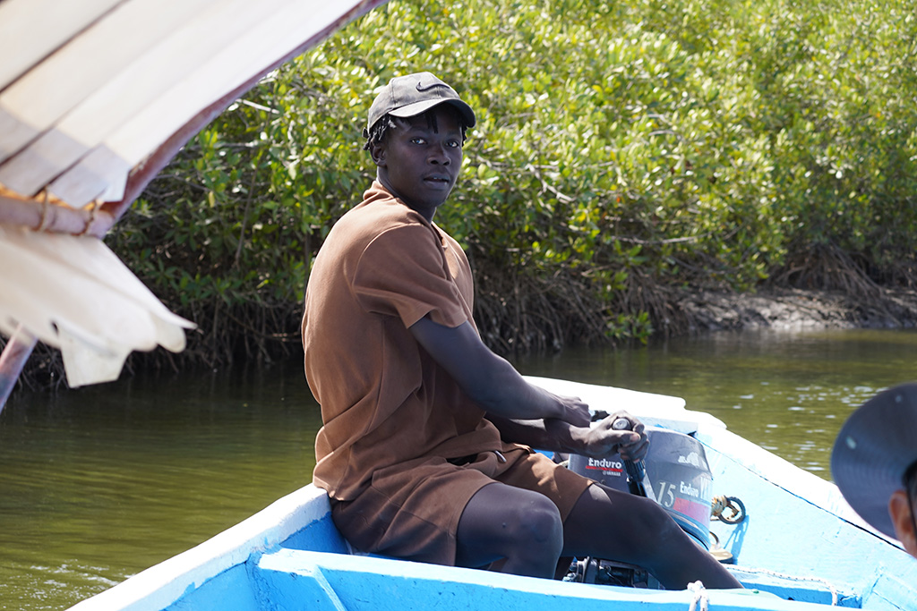 L’île de Mar n’est accessible que par bateau. Étant stationnés à proximité de la réserve naturelle de la Somone, nous prenons un bateau pour nous rendre sur l’île. Le paysage, la mangrove et la diversité des espèces d’oiseaux migrateurs me ravissent. Sur l’île, les habitants sont principalement des pêcheurs. Notre guide nous explique le mode de vie traditionnel des résidents