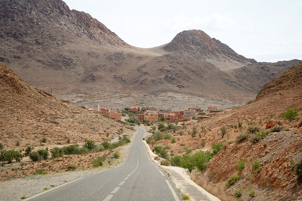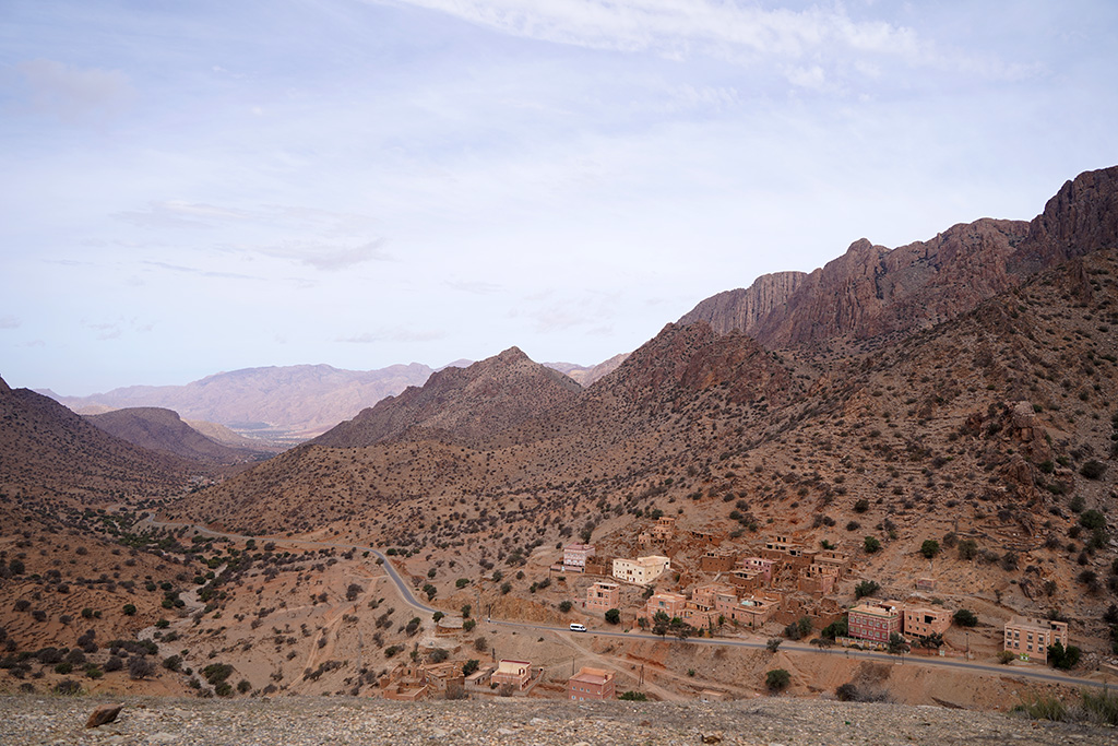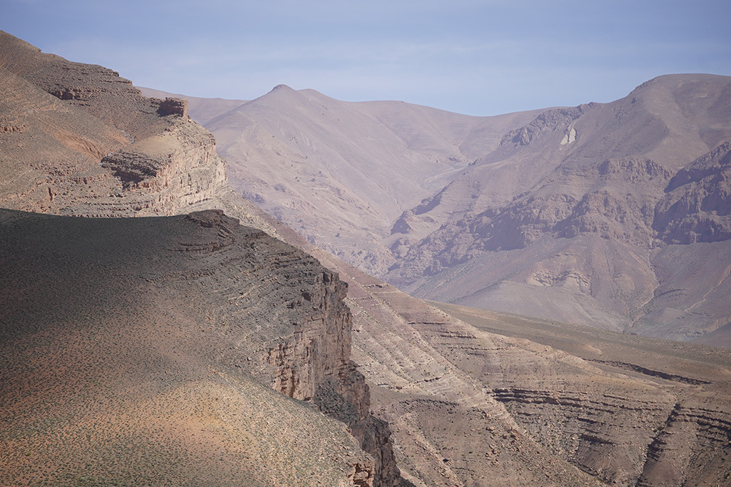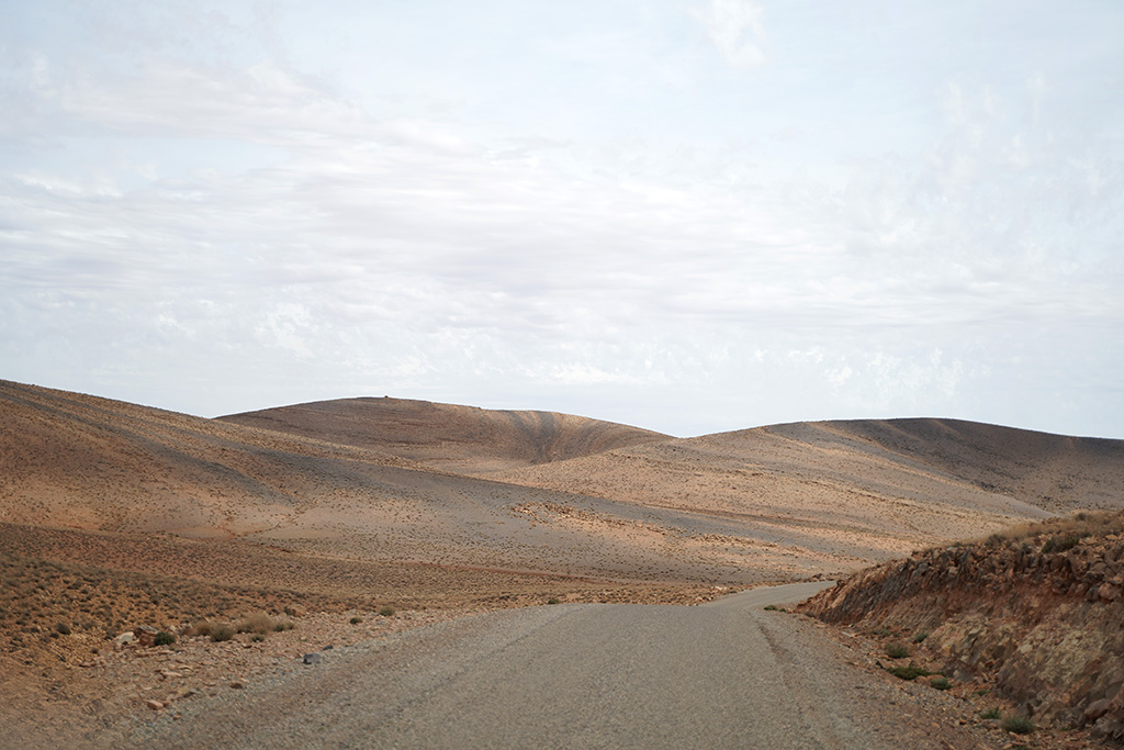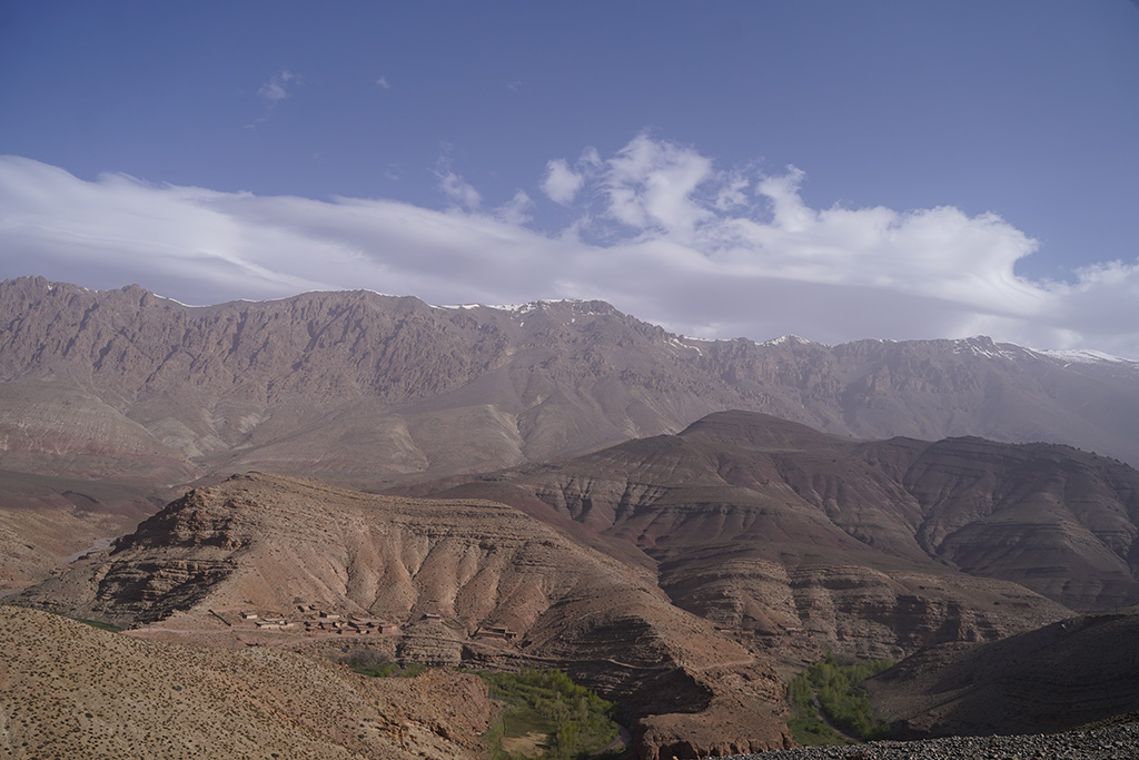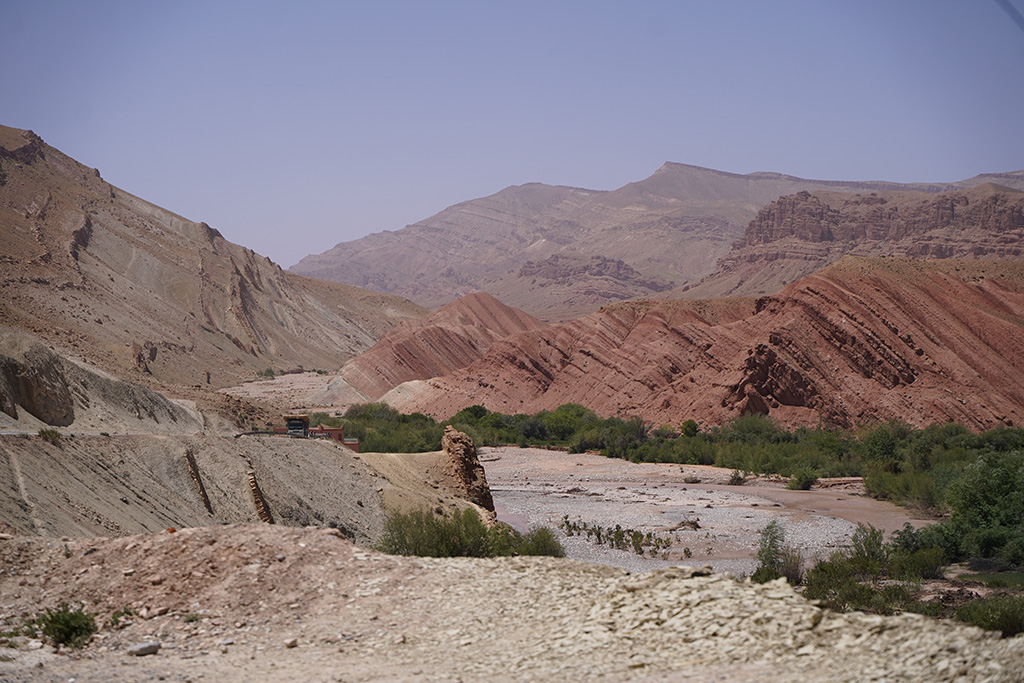 A travers les petites routes de montagnes , les paysages défilent sur un fond de couleur rose.les montagnes dans cette région sont très particulières. c est un désert de rochers ou les strates dessinent la forme de la montagne.