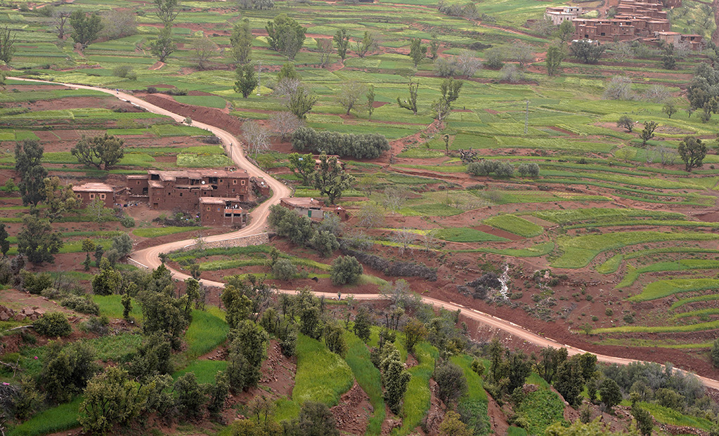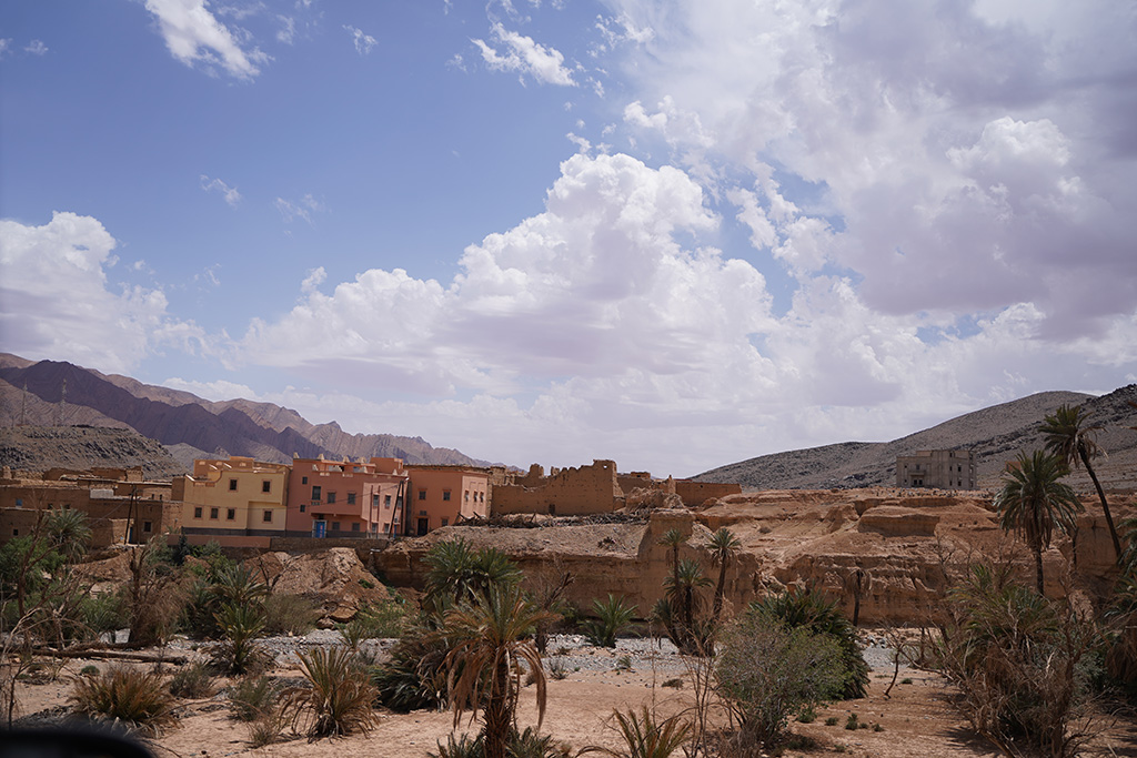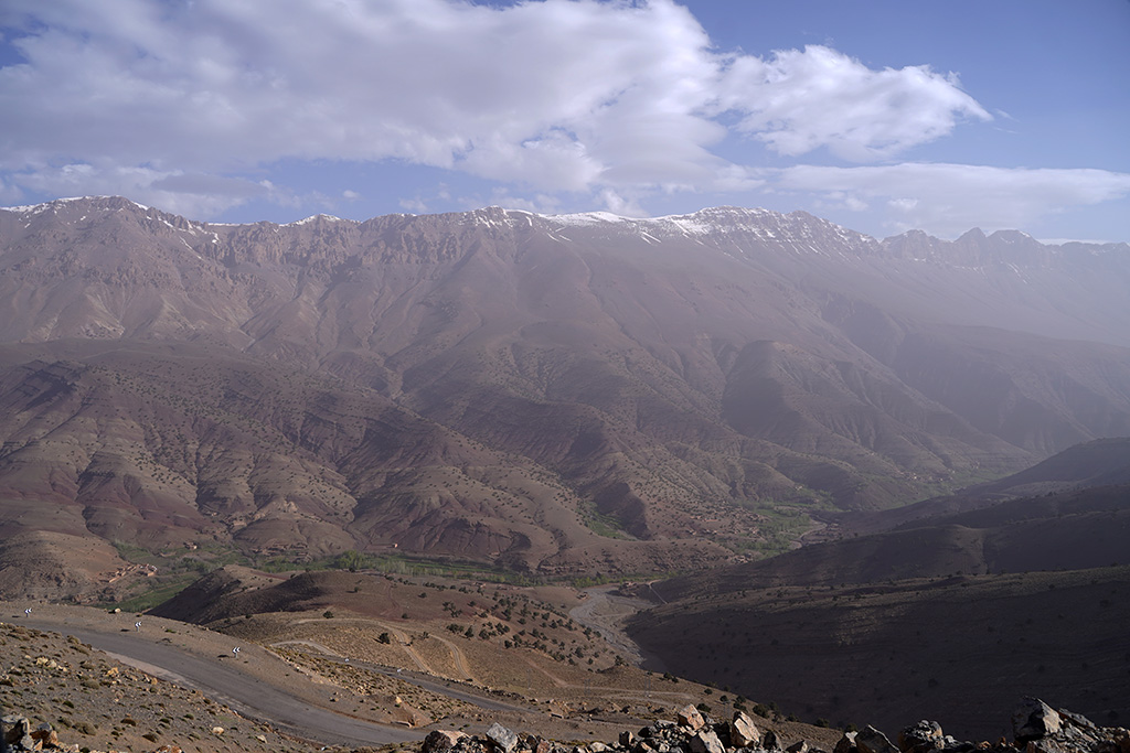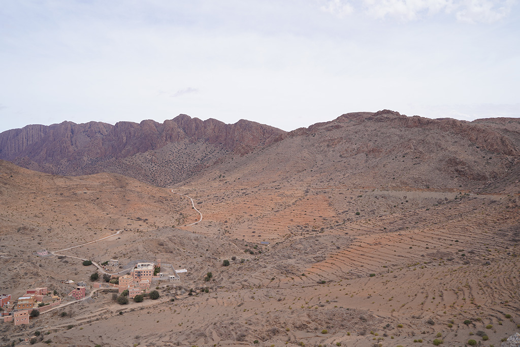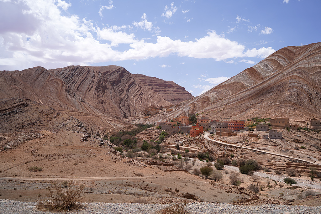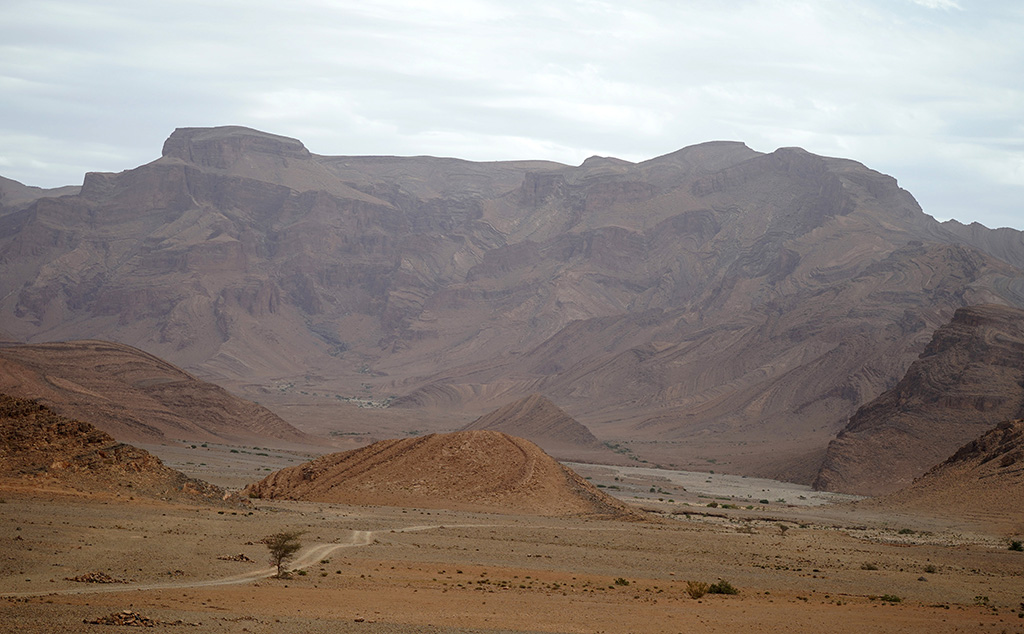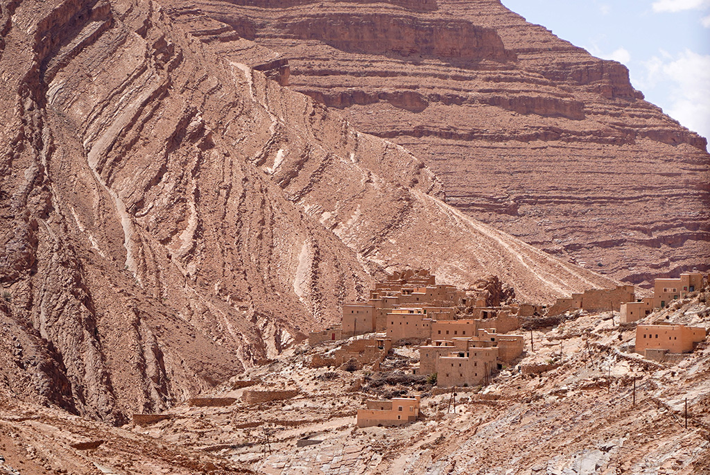 A travers les petites routes de montagnes , les paysages défilent sur un fond de couleur rose.les montagnes dans cette région sont très particulières. c est un désert de rochers ou les strates dessinent la forme de la montagne.